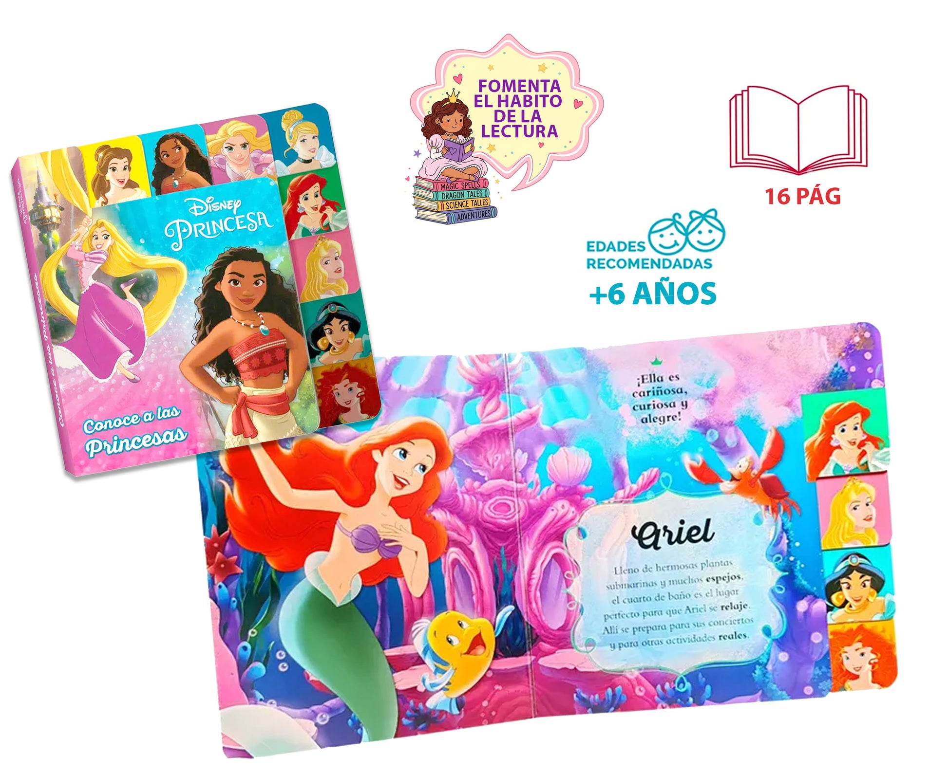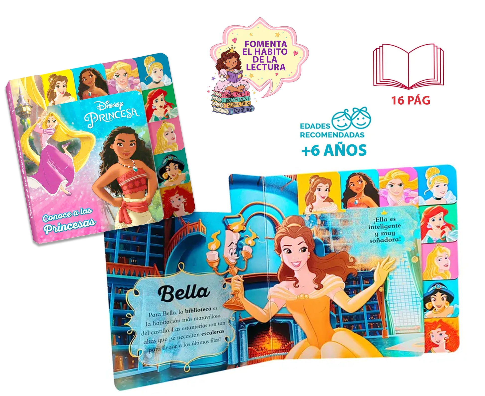 Libro Para Niños “Conoce a las Princesas Disney” – Pasta Dura Lectura Mágica y Educativa ¡Invita a tus pequeños a descubrir el mundo encantado de las princesas Disney! Este hermoso libro de pasta dura está diseñado especialmente para niños mayores de 6 años, con ilustraciones vibrantes que capturan la atención y despiertan la imaginación. Beneficios para el desarrollo infantil: - Fomenta el amor por la lectura desde temprana edad con personajes entrañables. - Estimula la imaginación y la creatividad a través de historias mágicas. - Fortalece habilidades cognitivas como la comprensión lectora, la memoria y la concentración. Con 16 páginas llenas de color y encanto, este libro es una excelente opción para regalar, compartir en familia o enriquecer la biblioteca infantil. ¡Haz que cada lectura sea una aventura real digna de una princesa!