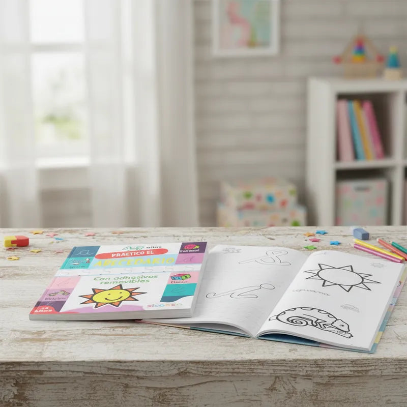 Set de 2 libros para niños Practico en Casa Inglés/Español 2 sets diferentes (se venden por separado) Cada libro cuenta con 48 páginas Colección enfocada para divertirse y aprender durante horas. Con increíbles stickers. Recomendado para: Niños y niñas de 2 a 7 años. Set 1 contiene: - Abecedario - Colores Set 2 contiene: - Formas - Números