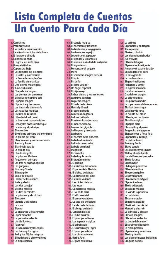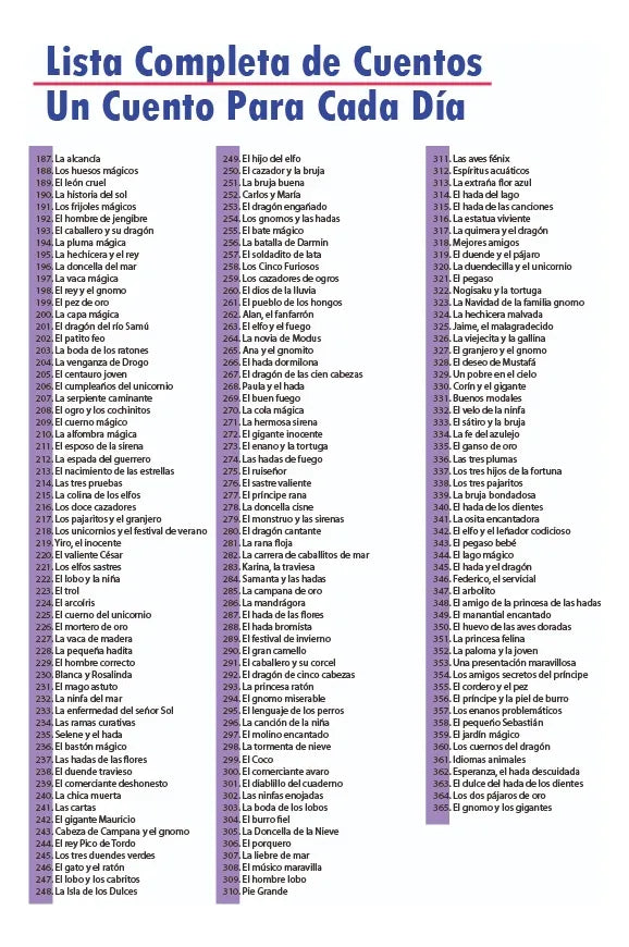 Disfruta cada día del año con una historia increíble diferente! Estos libros contienen 365 entretenidas historias, bellamente ilustradas y pensadas para divertir a los más pequeños de la casa cada uno. Cada una está fechada para que el joven lector pueda leer la historia correspondiente al día del año en que está y así poder llevar un orden. ¡Acompáñalos todos los días y de una forma divertida a que entren al apasionante mundo de la lectura!